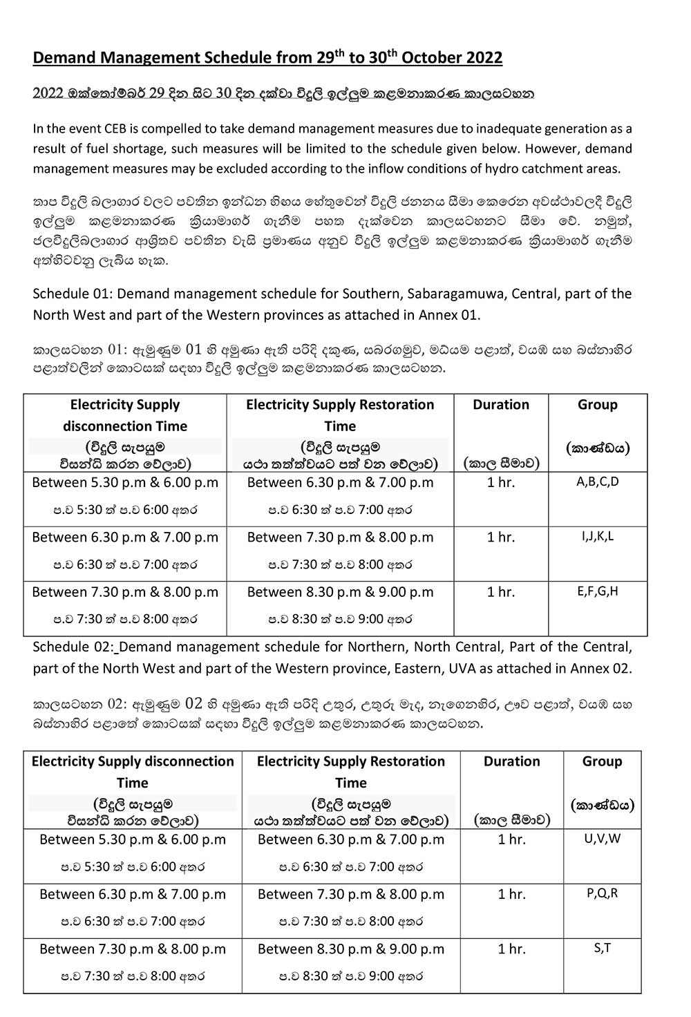 විදුලි කප්පාදු කාලසටහන පහතින්….