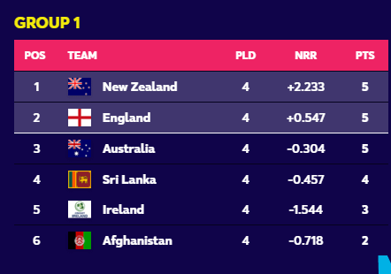 ඊට හේතුව නවසීලන්තය මේ වන විට දළ ලකුණු ලබාගැනීමේ වේගය +2.233 ක් ලෙස තබා ගැනීම හේතුවෙනි.
